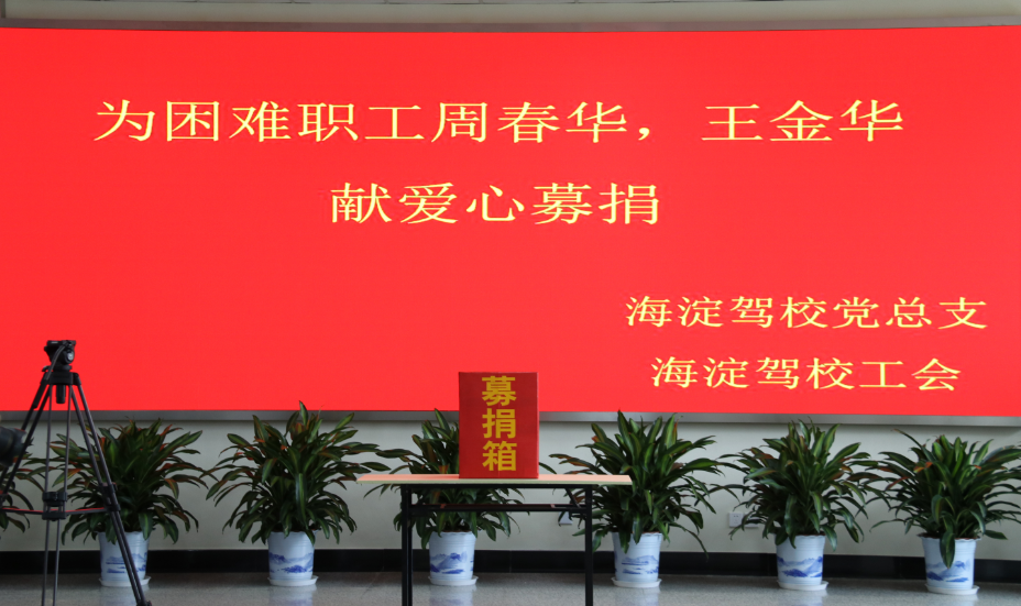 日,海淀驾校党总支、工会组织献爱心捐助活动,副书记李桂明代表海淀驾校党总支、工会讲话,刘全杰作为员工代表向全体员工发起倡议,海淀驾校领导、党员代表、中层管理代表、员工代表等