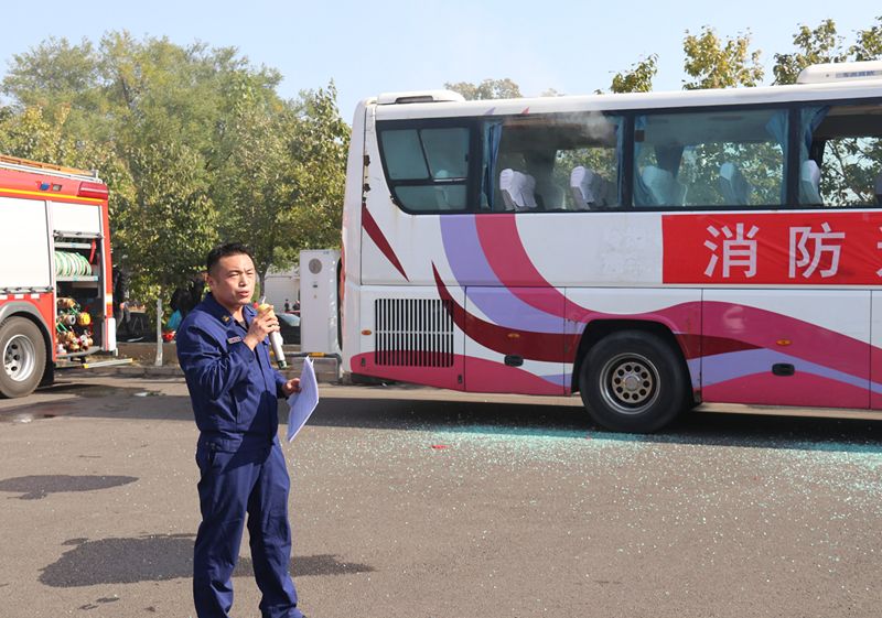 陈晋老师则为大家普及了大客车起火时逃生自救的方式方法,并邀请与会嘉宾参与其中,让大家对大客车起火时的突发状况及应急救援有了一个更真切的体会。