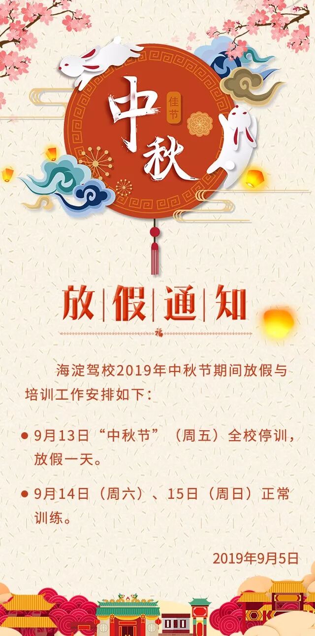 海淀驾校 | 2019年中秋节放假通知