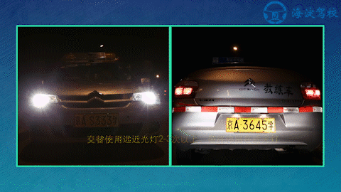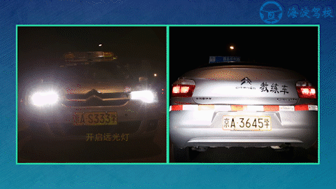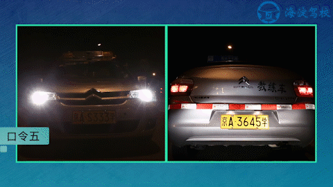 口令三:超车 学员操作:(远近光交替)向上用力抬四下(远,近,远,近,最后保留近光灯)