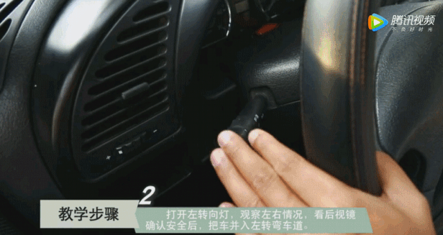左转弯操作步骤 打开左转向灯 观察左右情况 看后视镜确认安全后 把车并入左转弯车道