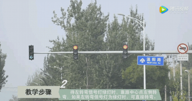 观察路口信号灯 当直行车道信号灯绿灯时 将车并入左转弯等待区