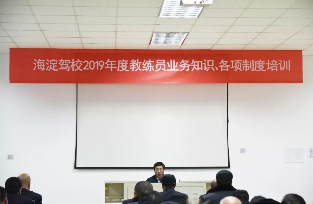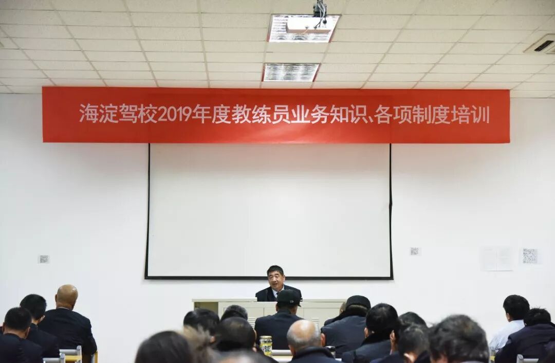 海淀驾校培训部副部长杨斌进行宣讲 开展业务知识学习和规章制度培训是海淀驾校的一项传统,对修订的规章制度条款进行宣贯和讲解,每年都会开展2-3次集中的业务学习,目的是提升全体教练员的业务技能、服务水平。