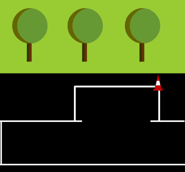 直线行驶要求车身距离右侧路边缘线30cm左右,十分考验技术。大家可以在练习过程中找准熟悉的点位,通过点位判断车身与道路的位置关系,在操作过程中应放慢车速,看向前方,兼顾左右后视镜,保证车身与边线平行。 难点2: 把握时机,停好车