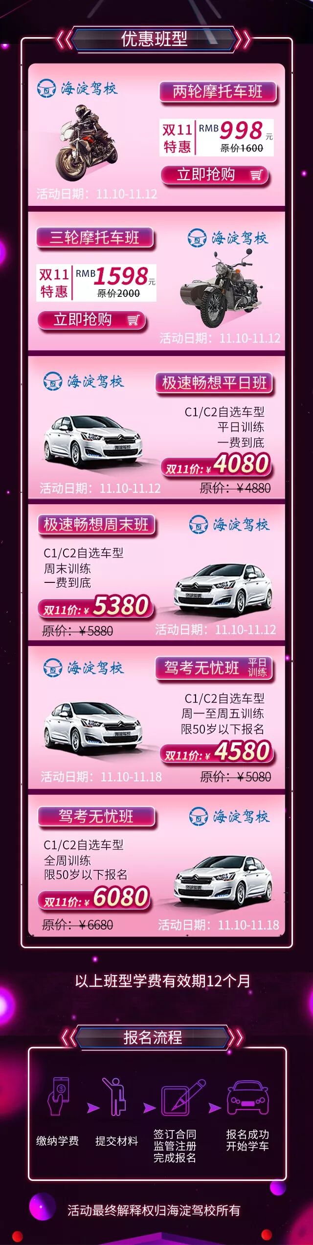 11.11当天 00:00、08:00、10:00、12:00、14:00、16:00 海淀驾校报名官方 六个整点,六场狂欢