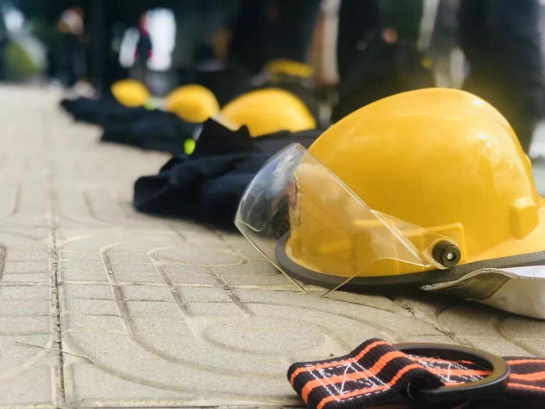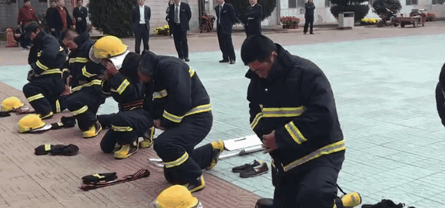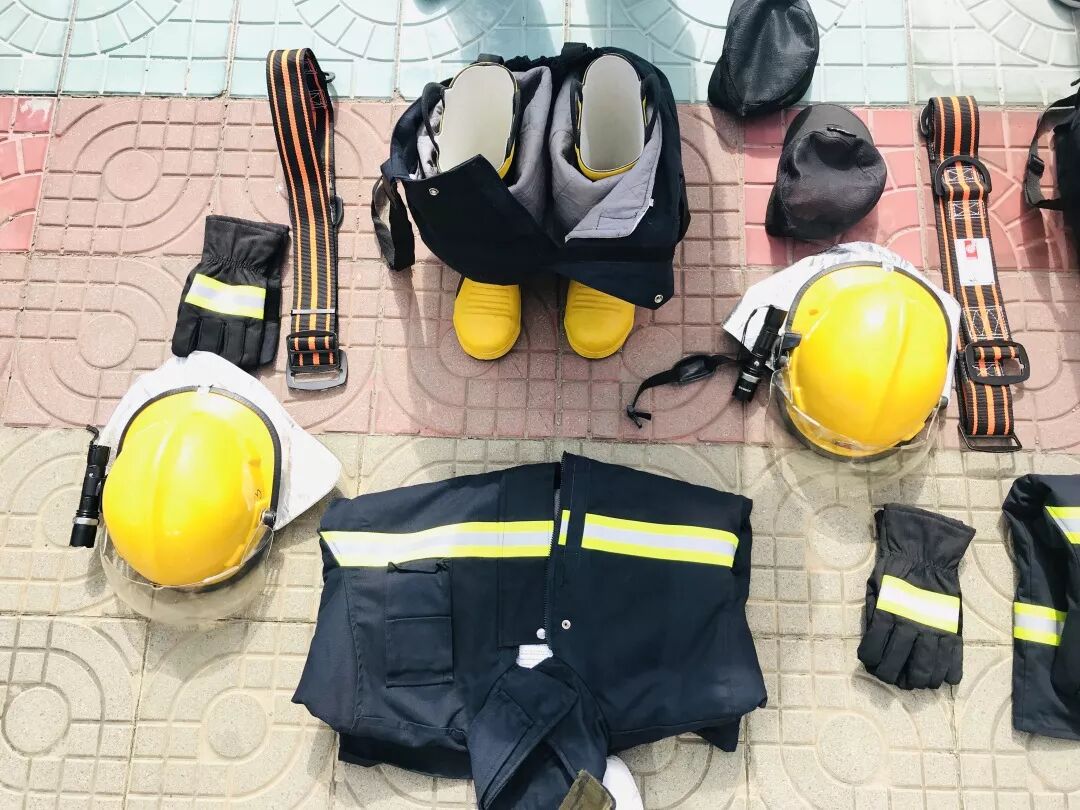 演练人员穿戴消防服