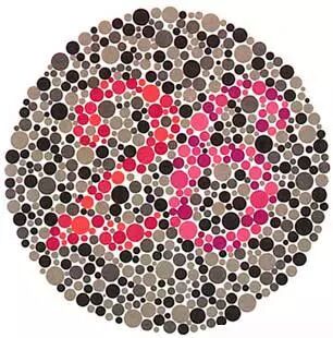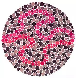 下面放一些红绿色盲检测图,检测一下自己有没有红绿色盲吧。 1.红绿色盲中的红色盲者只能找到紫色的线,而绿色盲者只能找到红色的线,但红绿色弱者、正常者则两线都能找到。
