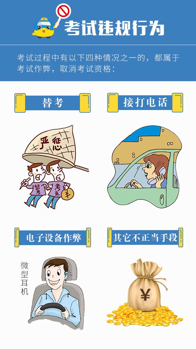 ![]() 考试规则要了解 技术没问题,重点便在于对考试规则的了解与熟悉,比如:考场路线怎样?该如何开?什么能带什么不能带?评判规则是怎样的?只有做好万全准备,考试才能更好应对。 多余的事不要做 虽然这些学员没有作弊,但却被判定为作弊导致取消考试资格,这也给学员提了个醒,考试时别做多余的事,说多余的话,把操作做好、细节控好才是关键。 意外情况可申诉 有时因一些不可抗力因素导致学员挂科,是可以到车管所申诉的,如果确认是设备或非学员自身原因导致挂科的,一般会给学员提供重考安排。