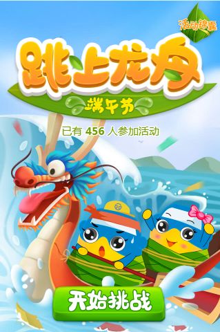 点击图片帮助小海跳龙舟 ![]() 左右摇晃手机 让化身粽子的小海小佳跳上龙舟 突破1500分 就可以参与 端午福利抽奖啦