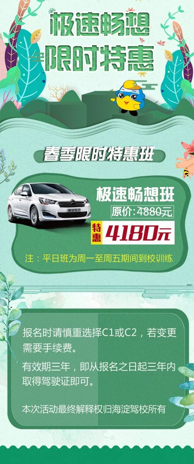 别怕 海淀驾校重磅推出 【极速畅想限时特惠班】 手动 or 自动 任你选哦