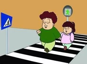5、横过马路或通过十字街道时,要走人行横道, 并注意红绿灯信号标志:红灯停,绿灯行。