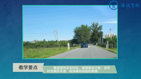 时间不能超过2秒 确认安全后靠右行驶 但是不能超出本车道 会车时不能变更车道 操作要点 提前预判会车时机 减速靠右行驶 会车时控制好车速 保持横向间距的掌握