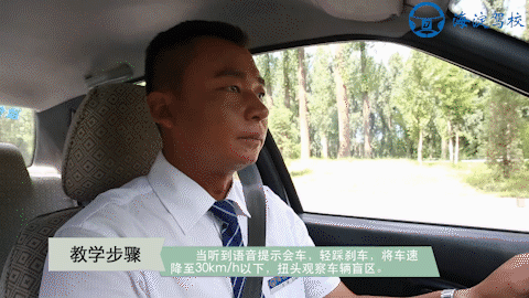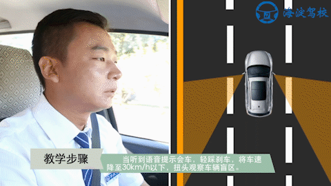 操作步骤 当听到语音提示会车 轻踩刹车 将车速降至30km/h以下 扭头观察车辆盲区