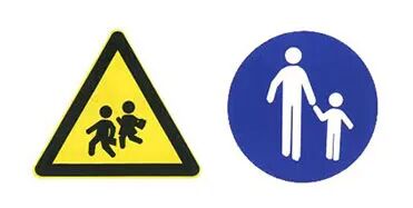 ![]() 记忆方法 “步行标志”的说法一般多用于指示标志,一般蓝底为指示标志,而黄底是警告标志,再结合画面信息,可以判断右边的是“步行标志”。 02 下图哪个是“人行横道标志”?