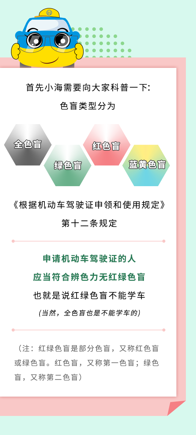 色盲患者能否通过驾考辨色能力体检项目?小海来解答!