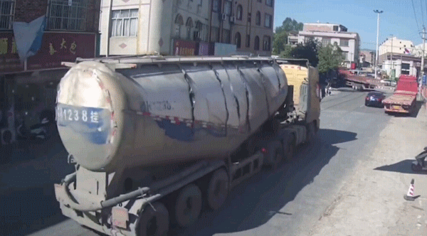 这是一起典型的因大车遮挡视线导致的“鬼探头”事故!黑色小轿车在与对向驶过的大车会车后,未及时发现大车后面出现的摩托车,导致事故发生。