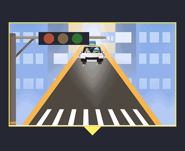 上路时一边注意着前面的交通情况