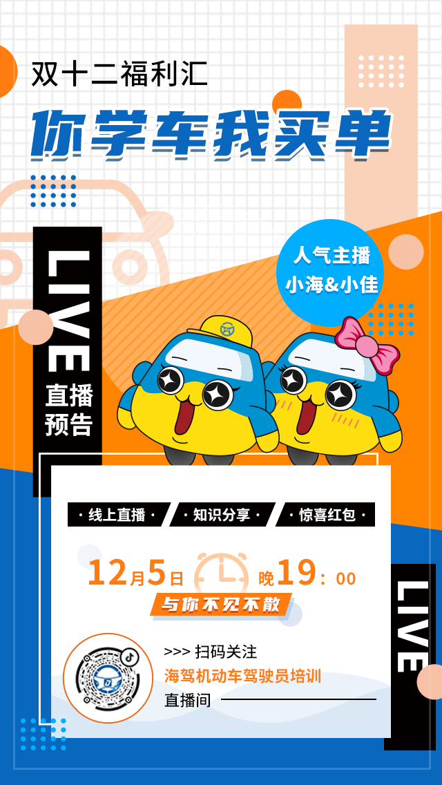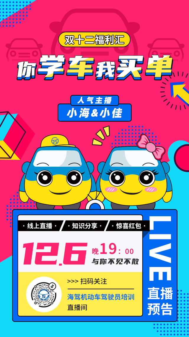 你学车我买单——海驾双12抖音直播福利汇今晚等你!