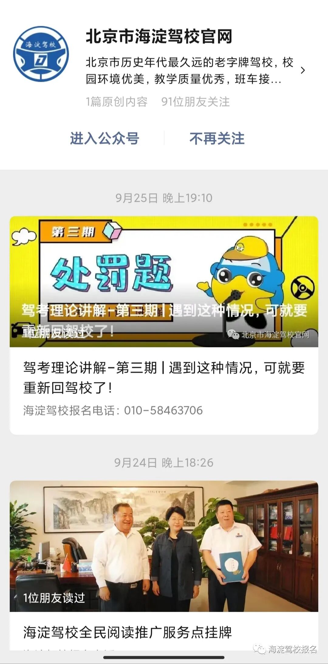 海淀驾校微信公众号
